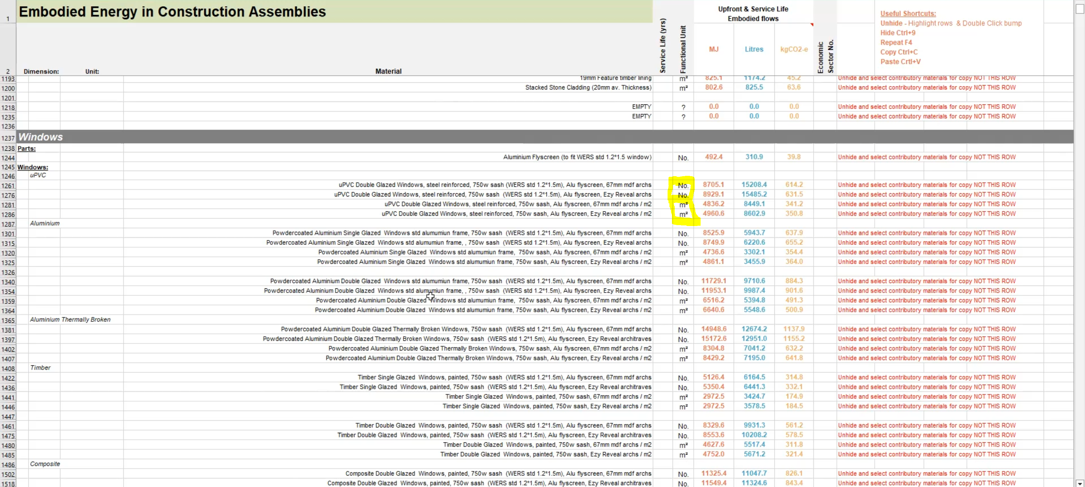 I am considering using IDEAL UPVC windows and I dont quite know how to enter in the excel sheet.