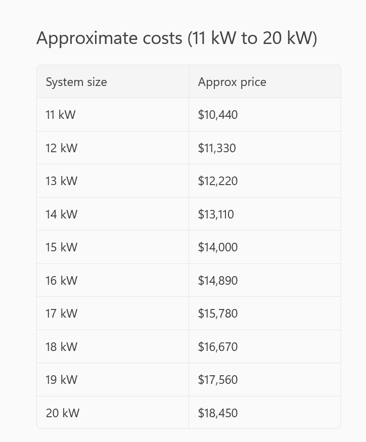 And for those that need prices for bigger sizes beyond 10kW, here's some average prices extrapolated from the table above: